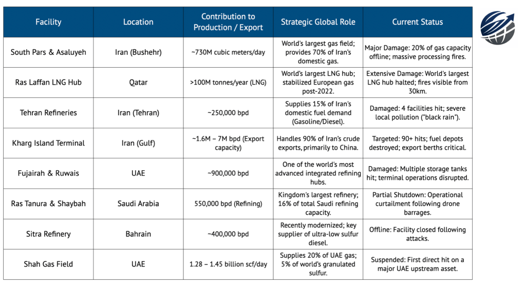 To more precisely value the impact of energy flow disruptions on the world and market, let’s consider which gas & oil production facilities have already been damaged or destroyed. Not to mention effective closure of the Strait of Hormuz since February 28, some of the world’s most important and advanced oil & gas refineries and production sites located in the Middle East and Iran have been severely damaged. Figure 3 includes only a selected number of facilities attacked that were publicly reported and that are having the most prominent impact on energy. This is far from being the complete list. As a result of military actions, these production facilities are attacked daily, meaning that every single day of the conflict imposes more and more risks on widening and persistent shortages for the global energy flows, with energy-importing countries suffering the most. IRGC recently claimed that Iran will “burn down” its entire energy infrastructure in response to attacks on Iranian oil facilities. Therefore, with no end to the US-Israel-Iran war in sight (which I will explore below as well), it seems that the current oil and gas prices underestimate the severity of the crisis. Markets should expect oil prices to stay well above $130 per barrel levels and even reach levels of $160-$170 per barrel. Citadel’s bimodal probability distribution model predicts oil trading either around $70 or closer to $150. Importantly, should the conflict come to an end soon (which again seems extremely unlikely due to the reasons I will explore below) and Strait of Hormuz to open, the restoration of these facilities would not be a simple “flip of the switch” because these sites involve high-pressure systems, volatile chemicals, and specialized global supply chains. It will take ~3-12+ months to restore the pre-conflict capacities and productivity levels, depending on the extent of the damage, which is already enough to have very painful effects for energy markets and global economic growth (given that attacks are over!!!).