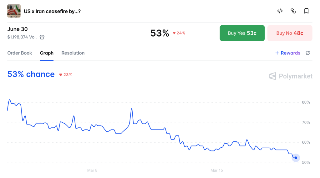 Therefore, the current market’s pricing and estimations appear to dangerously undervalue the real risks of the conflict, as a ceasefire by June 30 still seems very unlikely for a number of reasons. First, Trump’s administration’s mixed rhetoric on aims and actions (ranging from the conflict being over in days and weeks and even months as well as from Iran’s military being completely destroyed to Iran showing notable resistance) regarding military operations in Iran gives feelings of their own uncertainty and unclarity on how to proceed next. Second, even if troops are deployed on the ground, it is unlikely to get the conflict closer to the end given extremely hot temperatures in Iran in the summer, mountainous geographics, and political complexity in sending U.S. soldiers. Third, the cost-effectiveness of strikes seems to be on Iran’s side with relatively cheap drones (~$30,000 each) versus extremely expensive and high-tech missile systems (Tomahawks at $3.6 million each). Finally, we should remember that for Iran this war is a fight for survival and national independence, meaning that there is basically nothing to lose for Iran, and likely they will fight till the end with an ‘all-in’ mindset.