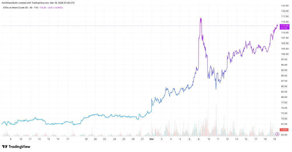 Oil prices far above pre-conflict assumptions reflect real supply disruption (damaged infrastructure + Strait of Hormuz constraints). Even with a ceasefire, recovery takes months, meaning elevated energy prices are likely to persist and keep production costs high globally.