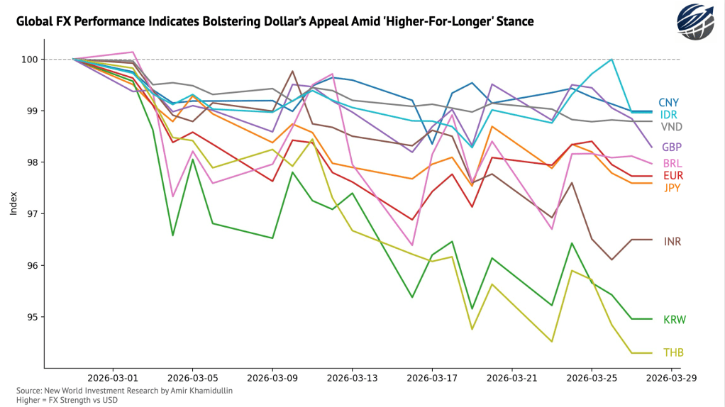 The government bonds, however, are obviously not so happy with energy shocks and inflation fears. Yields in almost all key economies surged since February 27. Furthermore, as I mentioned before, since most nations in EMs are net energy importers, investors are rotating away from EMs amid growth and stagflation fears. As their currency depreciates, EM countries will see their current account deficits widening, growth compressing, credit conditions tightening, and inflation spiking. This is definitely contractionary for these economies, but not structural. In other words, while development and growth will be suppressed in emerging markets for the next 6-18 months, the fundamental position with which they entered 2026 is still present. Corporate earnings, investments, R&D, and other fundamentals that are structural in nature are very unlikely to be undermined and deteriorated in a way severe enough to completely rewrite the 3-5 year macro case of these nations.